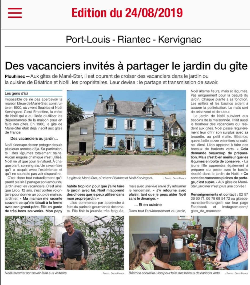 Die bekannte Regionalzeitung Ouest France hat uns einen ganzen Artikel gewidmet!
